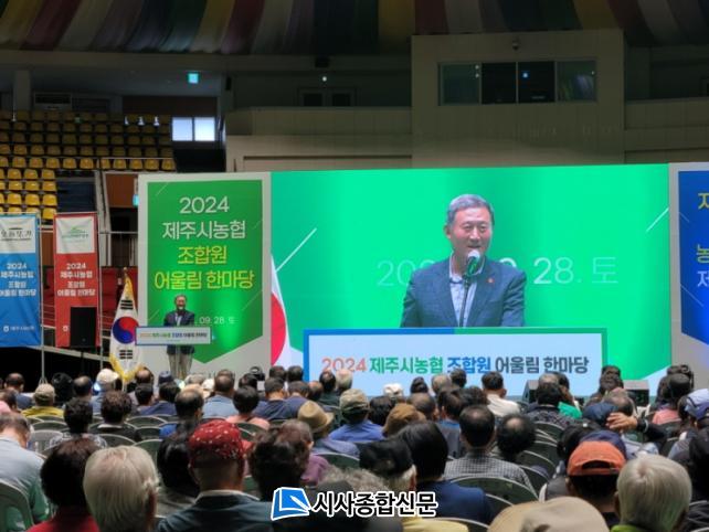 [½Ã»çÁ¾ÇսŹ® = °í¼º¹Î ±âÀÚ] ±è¿Ï±Ù Á¦ÁÖ½ÃÀåÀº 9¿ù 28ÀÏ(Åä) ÇѶóüÀ°°ü¿¡¼ ¿¸°¡º2024Á¦ÁֽóóÇù Á¶ÇÕ¿ø ¾î¿ï¸² ÇѸ¶´ç(Á¶ÇÕÀå °íºÀÁÖ)¡»¿¡ Âü¼®ÇØ Á¶ÇÕ¿øµéÀ» °Ý·ÁÇß´Ù.