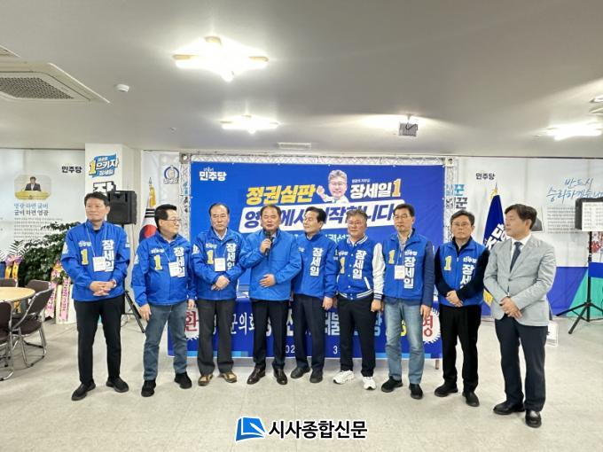 À̳¯ À念Áø ÀÇ¿ø ÀÔ´ç½Ä¿¡´Â Àå¼¼ÀÏ Èĺ¸¿Í ÁÖöÇö Àü³²µµ´çÀ§¿øÀå, À̰³È£ ±¹È¸ÀÇ¿ø µî ÁÖ¿ä ÀλçµéÀÌ ÇÔ²² ÀÚ¸®ÇØ Àå ÀÇ¿øÀÇ ¹ÎÁÖ´ç ÇÕ·ù¸¦ ȯ¿µÇß´Ù.
