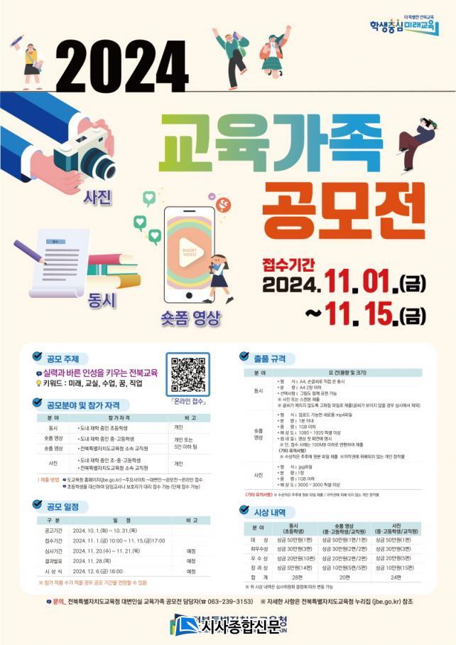 ¼ö»óÀÚ´Â 11¿ù 28ÀÏ ¹ßÇ¥µÉ ¿¹Á¤ÀÌ´Ù. ¼ö»óÀÛÀº ÀüºÏ±³À°Ã» ´©¸®Áý°ú À¯Æ©ºê, ÀνºÅ¸±×·¥, ºí·Î±× µî¿¡ °ÔÀçµÈ´Ù. Ãâǰ ±Ô°ÝÀ̳ª À¯ÀÇ»çÇ× µî ÀÚ¼¼ÇÑ »çÇ×Àº ÀüºÏ±³À°Ã» ´©¸®Áý¿¡¼ È®ÀÎÇϰųª °ø¸ðÀü ´ã´çÀÚ(063-239-3153)¿¡°Ô ¹®ÀÇÇÏ¸é µÈ´Ù.