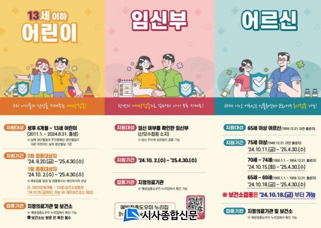 ÀÎÇ÷翣ÀÚ ¹«·á Á¢Á¾ ´ë»óÀº »ýÈÄ 6°³¿ù~13¼¼(¡¯11.1.1.~¡®24.8.31. Ãâ»ýÀÚ) ¾î¸°ÀÌ, ÀӽźÎ, 65¼¼ ÀÌ»ó ¾î¸£½ÅÀ̸ç, Á¦ÁÖµµ ÀÚü Áö¿øÀ¸·Î 60~64¼¼, °¨¿°Ãë¾à½Ã¼³ ÀÔ¿ø․ÀÔ¼ÒÀÚ, ±âÃÊ»ýȰ¼ö±ÞÀÚ, ±¹°¡À¯°øÀÚ, ÂüÀü¿ë»ç, °í¿±Á¦ ÈÄÀ¯Áõ ÀÇ»çȯÀÚ, 4․3 Èñ»ýÀÚ ¹× À¯Á·ÀÚ, Àå¾ÖÀÎ µî ¾à 2¸¸ 1,800¸íµµ Æ÷ÇԵȴÙ.