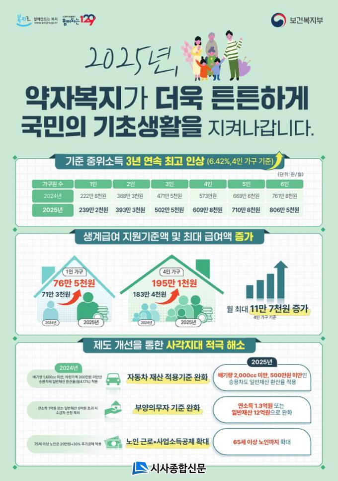 ¶ÇÇÑ, »ý°è±Þ¿©´Â 1ÀÎ °¡±¸ ±âÁØ 2024³â 71¸¸ 3õ ¿ø¿¡¼ 2025³â 76¸¸ 5õ ¿øÀ¸·Î ÃÖ´ë 7.3% ÀλóµÇ¾î ¿ù 5¸¸ 2õ ¿øÀÌ Ãß°¡µÈ´Ù. 4ÀÎ °¡±¸ ±âÁØÀ¸·Î´Â 2024³â 183¸¸ 4õ ¿ø¿¡¼ 2025³â 195¸¸ 1õ ¿øÀ¸·Î ÃÖ´ë 6.4% ÀλóµÇ¾î ¿ù 11¸¸ 7õ ¿øÀÌ ´õÇØÁø´Ù.