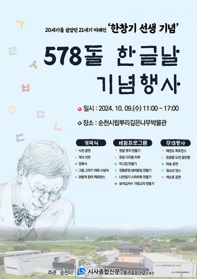 ÇÑÆí, Áö³ 3ÀÏ¿¡ °³Ãֵƴø ¡°¼øÃµ½Ã¸³»Ñ¸®±íÀº³ª¹«¹Ú¹°°ü Çѱ۳¯ ¸ÂÀÌ ¡®ÇÑâ±â ¼±»ý ±â³ä¡¯ ±×¸²±×¸®±â ´ëȸ¡± ÀÔ»óÀÚµéÀÇ ½Ã»ó½ÄÀº ¿À´Â 9ÀÏ Çѱ۳¯ Çà»ç °³¸·½Ä¿¡¼ ÁøÇàµÉ ¿¹Á¤ÀÌ´Ù. ÀÌ ³¯ ¼ö»óÀÚ»Ó¸¸ ¾Æ´Ï¶ó, ±×¸² ±×¸®±â ´ëȸ¿¡ Âü°¡Çß´ø Âü¿©Àڵ鿡°Ô Ãß÷À» ÅëÇØ °æÇ°À» ÁõÁ¤ÇÑ´Ù.