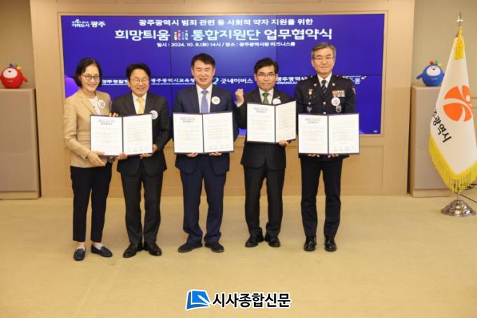 À̳¯ ¾÷¹«Çù¾à¿¡´Â ÀÌÁ¤¼± ±³À°°¨À» ºñ·ÔÇØ °±âÁ¤ ±¤ÁÖ½ÃÀå, ¹Ú¼ºÁÖ ±¤ÁÖ°æÂûûÀå, »çȸº¹Áö¹ýÀÎ ±Â³×À̹ö½º ±è¿õö »ç¹«ÃÑÀåÀÌ Âü¼®ÇßÀ¸¸ç, ¾÷¹«Çù¾àÀ» °è±â·Î ¡®¹üÁËÇÇÇØ°¡Á¤ Èñ¸ÁÆ·¿ò ÅëÇÕÁö¿ø´Ü¡¯À» ¿î¿µÇϱâ·Î Çß´Ù.