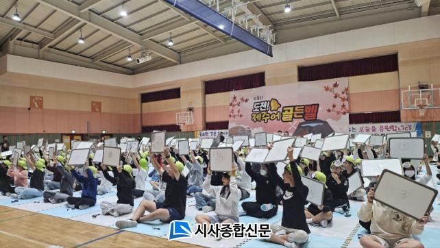 | À̵µÃʵîÇб³, Á¦ÁÖ¾î °ñµçº§ ÄûÁî´ëȸ ¼ºÈ²¸® °³ÃÖ Áö¿ªÁÖ¹ÎÀÚÄ¡À§¿øÈ¸¿Í °ñµçº§À» ¿ï¸®¸ç Á¦ÁÖ¾î º¸ÀüÀÇ °¡Ä¡¸¦ ³ª´©´Ù |