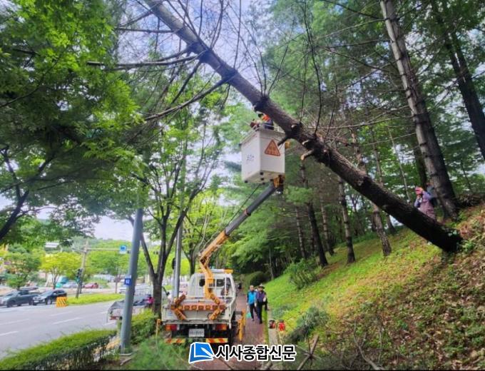 Áö³ 7¿ù, ÁýÁßÈ£¿ì·Î ÀÎÇØ ¿ÕÁöÇö´ë1Â÷ ¾ÆÆÄÆ® ¾Õ¿¡¼ 15m ³ôÀÌÀÇ À㳪¹«°¡ Àü¼±¿¡ °É¸®´Â »ç°í°¡ ¹ß»ýÇß´Ù. ´ç½Ã Àα٠3,000¼¼´ë¿¡ Á¤ÀüÀÌ ¿ì·ÁµÇ´Â »óȲ¿¡¼, ¼øÃµ½Ã´Â ÇÑÀü°ú Çù·ÂÇØ ´ëÇü Å©·¹Àΰú ÀÛ¾÷Àκθ¦ Áö¿øÇÏ¿© °¡·Î¼ö¸¦ ½Å¼ÓÇÏ°í ¾ÈÀüÇÏ°Ô Ã³¸®ÇØ Á¤Àü ÇÇÇØ¸¦ »çÀü¿¡ ¿¹¹æÇß´Ù.