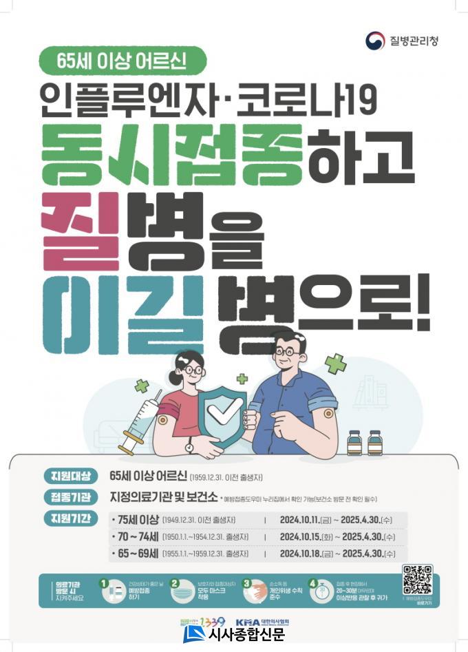 Á¢Á¾ ÀÏÁ¤Àº ¿¬·Éº° ¼øÂ÷ÀûÀ¸·Î ÀÎÇ÷翣ÀÚ¿Í Äڷγª19°¡ µ¿ÀÏÇÏ°Ô ÁøÇàµÈ´Ù. 75¼¼ ÀÌ»óÀº 11ÀϺÎÅÍ, 70~74¼¼´Â 15ÀϺÎÅÍ, 65¼¼~69¼¼´Â 18ÀϺÎÅÍ ½ÃÀÛÇØ 2025³â 4¿ù 30ÀϱîÁö Á¢Á¾ÇÑ´Ù.