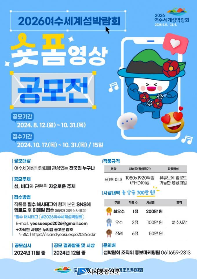 À̹ø °ø¸ðÀüÀº ±¹¹Î ´©±¸³ª(°³ÀÎ ¶Ç´Â ÆÀ) ÀÀ¸ð °¡´ÉÇϸç, Á¢¼ö ±â°£Àº 10¿ù 17ÀϺÎÅÍ 10¿ù 31ÀϱîÁö Âü°¡ÀÚ SNS °èÁ¤¿¡ ÀÀ¸ð ÀÛǰÀ» ÁöÁ¤µÈ ÇØ½ÃÅÂ±×¿Í ÇÔ²² °ÔÀçÇÑ µÚ Âü°¡½Åû¼ µîÀ» ´ã´çÀÚ À̸ÞÀÏ(yeosuexpo2026@gmail.com)·Î Á¦ÃâÇÏ¸é µÈ´Ù.