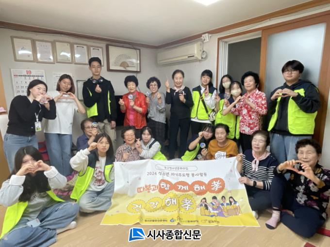 ¡®ÇÔ²²ÇØüø, °Ç°ÇØüø¡¯ Ȱµ¿Àº Âü¿© û¼Ò³âµéÀÌ Á÷Á¢ Ȱµ¿À» ±âȹÇϰí ÁøÇàÇÏ´Â ÇÁ·Î±×·¥À¸·Î Áö¿ª ¾î¸£½Å°ú û¼Ò³âÀÌ »çȸÀû À¯´ë°¨À» Çü¼ºÇϰí ÇÔ²² È¿¸¦ ½ÇõÇϸç Ä£ÈÀû °ü°è¸¦ ¸Î´Â °ÍÀ» ¸ñÀûÀ¸·Î ÇÏ¿© Áö³ 4¿ùºÎÅÍ ¿î¿µÈ¸ÀÇ ¹× »çÀü ¿¬½ÀÀ» °ÅÃÄ Áö¿ª ¾î¸£½Å 90¿© ¸í°ú ±³·ùÇÏ¸ç µû¶æÇÑ Ãß¾ïÀ» ½×¾Æ°¡°í ÀÖ´Ù.