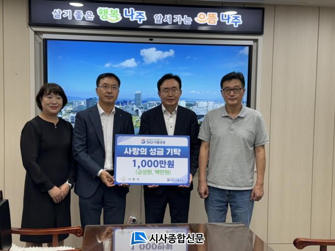 ¼º±Ý Àü´Þ½Ä¿¡´Â À±º´Å ³ªÁÖ½ÃÀå, SGI¼¿ïº¸Áõ ±¤ÁÖÈ£³²º»ºÎ ÇÑÁøÈ¯ º»ºÎÀå, ±Ý¼º¿ø ÃÖ¼º¼÷ ¿øÀå, ¹é¹Î¿ø ½É»ó´ë ¿øÀåÀÌ Âü¼®ÇØ µû¶æÇÑ ³ª´®ÀÇ ¼ø°£À» ÇÔ²²Çß´Ù. ƯÈ÷ SGI¼¿ïº¸Áõ ±¤ÁÖÈ£³²º»ºÎ´Â ´Ü¼øÇÑ ±âºÎ¿¡ ±×Ä¡Áö ¾Ê°í Á÷¿øµéÀÌ Á÷Á¢ ÀÚ¿øºÀ»ç¿¡ ³ª¼ Áö¿ª»çȸ¿¡ ¿ÂÁ¤À» ³ª´©¸ç ´«±æÀ» ²ø¾ú´Ù.