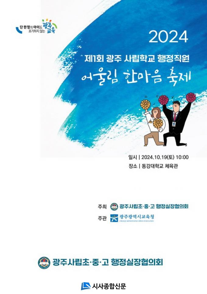 [½Ã»çÁ¾ÇսŹ® = ¿À½ÂÅà ±âÀÚ] ±¤ÁÖ±¤¿ª½Ã »ç¸³Çб³ ÇàÁ¤½ÇÀå ÇùÀÇȸ´Â ¿À´Â 19ÀÏ µ¿°´ëÇб³ üÀ°°ü¿¡¼ Áö¿ª »ç¸³Çб³ ÇàÁ¤Á÷¿ø°ú ±³À°°ø¹«Á÷¿ø 700¿© ¸íÀÌ Âü¼®ÇÑ °¡¿îµ¥ ¡®Á¦1ȸ ±¤ÁÖ »ç¸³Çб³ ÇàÁ¤Á÷¿ø ¾î¿ï¸² ÇѸ¶À½ ÃàÁ¦¡¯¸¦ °³ÃÖÇÑ´Ù.