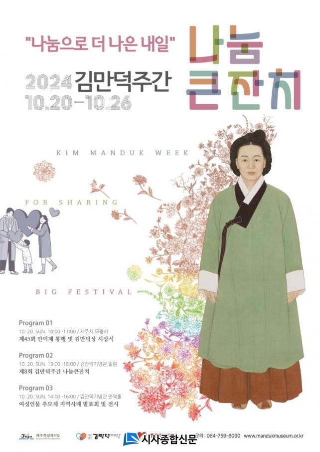 ¡®Á¦45ȸ ¸¸´öÁ¦ ºÀÇà ¹× ±è¸¸´ö»ó ½Ã»ó½Ä¡¯Àº 20ÀÏ(ÀÏ) 10½Ã, Á¦Áֽà »ç¶óºÀ ¸ðÃæ»ç³» ±è¸¸´ö ¹¦Å¾¿¡¼ ¿¸°´Ù. ¸¸´öÁ¦´Â ´ëÇѹα¹À» ´ëÇ¥ÇÏ´Â ³ëºí¸®½º ¿Àºí¸®ÁÖÀÇ Ç¥»óÀÎ ÀÇÀÎ ±è¸¸´öÀÇ Á¤½ÅÀ» ±â¸®°í, ½Ã´ëÁ¤½ÅÀ¸·Î °è½ÂÇϱâ À§ÇØ 1980³âºÎÅÍ ±è¸¸´ö»ó ½Ã»ó½Ä°ú º´ÇàÇÏ¿© ºÀÇàµÇ¾î¿À°í ÀÖ´Ù. ¸¸´öÁ¦´Â 12¸íÀÇ ¿©¼ºÀ¸·Î¸¸ ±¸¼ºµÈ Á¦°ü¿¡ ÀÇÇØ ºÀÇàµÇ´Âµ¥ ÇåÈ¡¤ºÐÇâ, Á¦·Ê ºÀÇà, ºÐÇâ ¼ø¼·Î ¾ö¼÷ÇÏ°Ô ÁøÇàµÈ´Ù.