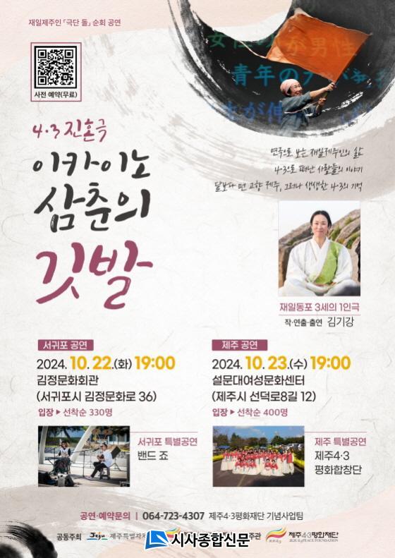 4․3ÁøÈ¥±Ø ¡®ÀÌÄ«ÀÌ³ë »ïÃáÀÇ ±ê¹ß¡¯Àº Áö³ 7¿ù Á¦ÁÖ¿¡¼ óÀ½À¸·Î °ø¿¬À» ¼±º¸ÀÌ°í ¼ºÈ²¸®¿¡ ¸·À» ³»·ÈÀ¸³ª, À¯Á· ¹× µµ¹ÎµéÀÇ Àç°ø¿¬ ¿äûÀ¸·Î ¼±ÍÆ÷½Ã¿Í Á¦Áֽÿ¡¼ °¢ 1ȸ¾¿ ¼øÈ¸ °ø¿¬ÇÑ´Ù°í Á¦ÁÖ4․3ÆòÈÀç´ÜÀº ¹àÇû´Ù.