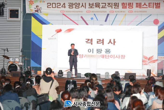 ÃàÁ¦´Â ±¤¾ç½Ã½Ã¸³ÇÕâ´ÜÀÇ ¸ÚÁø õ»óÀÇ Çϸð´Ï ½ÄÀü °ø¿¬À¸·Î ½ÃÀ۵ƴÙ. À̾î Àç´Ü ÀÌ»çÀå, »óÀÓÀÌ»ç, ±¤¾ç½ÃÀå, ±¤¾ç½ÃÀÇȸ ÀÇÀå, Àü¡¤ÇöÁ÷ ½ÃÀÇ¿ø, ±¤¾ç°æÁ¦È°¼ºÈ¿îµ¿º»ºÎ Àü¡¤ÇöÁ÷ »óÀÓ´ëÇ¥ µîÀÌ Âü¼®ÇØ ±¤¾ç½Ã º¸À° ±³Á÷¿øÀ» À§ÇÑ °Ý·ÁÀÇ Àλ縻À» ÀüÇß´Ù.