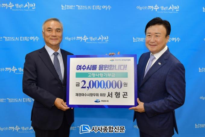 [½Ã»çÁ¾ÇսŹ® = ¿À½ÂÅà ±âÀÚ] ¼Çü°ï Àç°æ¿©¼ö½ÃÇâ¿ìȸÀåÀÌ °íÇâÀÎ ¿©¼ö¿¡ °íÇâ»ç¶û±âºÎ±Ý 200¸¸ ¿øÀ» Àü´ÞÇß´Ù.
