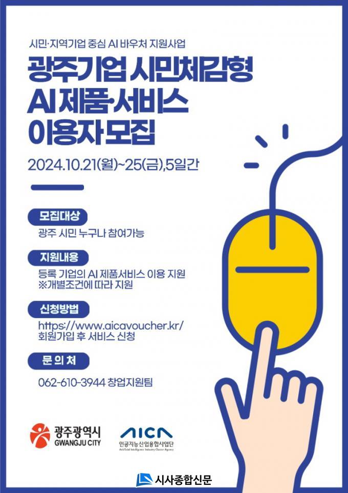 ±¤ÁֽùÎÀÌ¸é ´©±¸³ª ½ÅûÇÒ ¼ö ÀÖÀ¸¸ç, ¡®±¤ÁֽùΠÀΰøÁö´É(AI) ¹Ù¿ìó ´©¸®Áý(www.aicavoucher.kr)¡¯¿¡¼ ½ÅûÇÒ ¼ö ÀÖ´Ù. ½ÅûÀÚ¿Í ¼ºñ½º µî·Ï±â¾÷ÀÌ ¿¬°á(¸ÅĪ)µÇ¸é ÀÌ¿ë±Ç(ÀÌ¿ë·áÀÇ 90%)À¸·Î Á¦Ç°°ú ¼ºñ½º¸¦ ÀÌ¿ëÇÒ ¼ö ÀÖ´Ù.