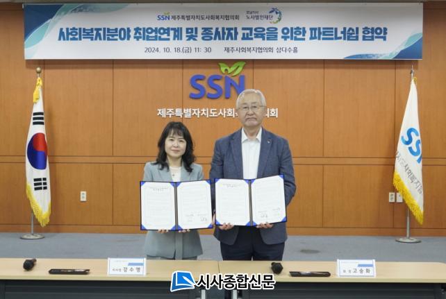 [½Ã»çÁ¾ÇսŹ® = °í¼º¹Î ±âÀÚ] Á¦ÁÖÆ¯º°ÀÚÄ¡µµ»çȸº¹ÁöÇùÀÇȸ(ȸÀå °í½ÂÈ)´Â Áö³ 18ÀÏ ³ë»ç¹ßÀüÀç´Ü È£³²Áö»ç(Áö»çÀå °¼ö¿µ)¿Í »çȸº¹ÁöºÐ¾ß Ãë¾÷¿¬°è ¹× Á¾»çÀÚ ±³À°À» À§ÇÑ ÆÄÆ®³Ê½± ¾÷¹«Çù¾àÀ» ü°áÇß´Ù.