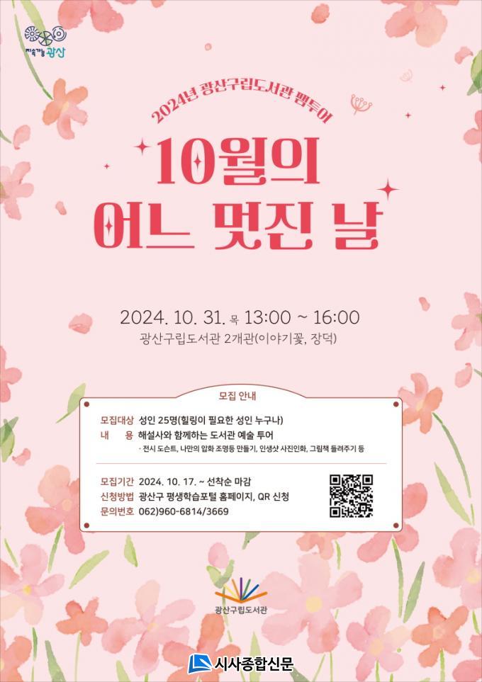 10¿ùÀÇ ¾î´À ¸ÚÁø ³¯Àº 31ÀÏ À̾߱â²Éµµ¼°ü, Àå´öµµ¼°ü¿¡¼ ÁøÇàÇϸç, µµ¼°ü °ßÇп¡ ´ëÇÑ ÀÚ¼¼ÇÑ ¾È³»´Â ±¤»ê±¸ ±³À°µµ¼°ü°ú(062-960-3669)·Î ¹®ÀÇÇÏ¸é µÈ´Ù.
