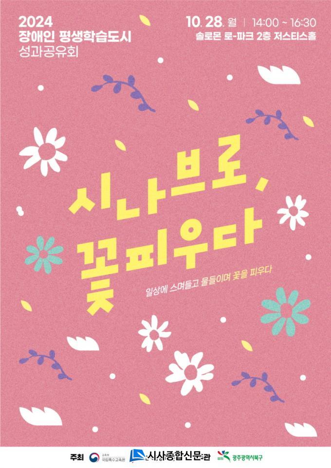 ¡®½Ã³ªºê·Î ²É ÇÇ¿ì´Ù¡¯ ÁÖÁ¦·Î ¿¸®´Â À̹ø Çà»ç´Â ºÏ±¸ Àå¾ÖÀÎ Æò»ýÇнÀ ÇÁ·Î±×·¥ Âü¿©ÀÚ, À¯°ü±â°ü °ü°èÀÚ µî 100¿© ¸íÀÌ Âü¼®ÇÑ °¡¿îµ¥ ¡®°³È¸ ÆÛÆ÷¸Õ½º¡¯, ¡®ÃàÇϰø¿¬¡¯À» ºñ·ÔÇØ ¡®»ç¾÷¼º°ú ¹ßÇ¥¡¯ µîÀÌ ¿ÀÈÄ 2½ÃºÎÅÍ 4½Ã 30ºÐ±îÁö ÁøÇàµÈ´Ù.