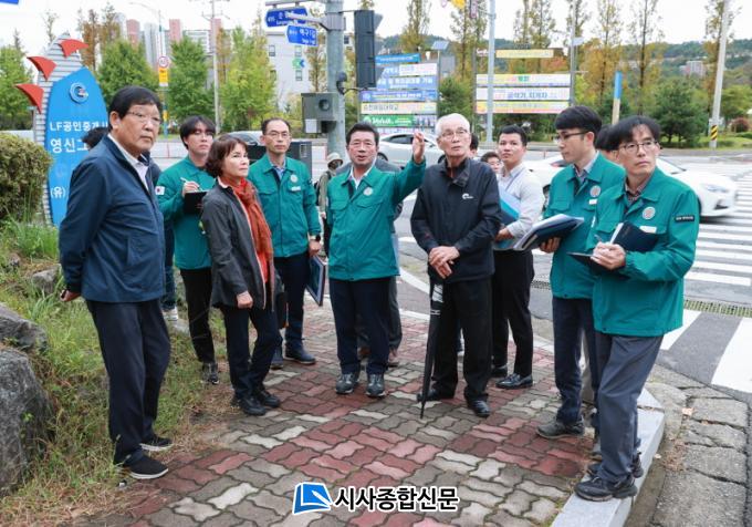 ±¤¾çÀ¾ ¿µ½Å±×¸°ºô ÁøÀÔµµ·Î ÇöÀåÀº »çÀ¯Áö ³» °³¼³µÈ º¸µµ·Î ÀÎÇØ ÅëÇà¿¡ ¾î·Á¿òÀ» °Þ°í ÀÖ´Ù´Â ¹Î¿øÀÌ Á¦±âµÈ Àå¼Ò´Ù. ÇöÀåÀ» ãÀº Á¤ÀÎÈ ½ÃÀåÀº ¹Î¿øÀÎÀ» ¸¸³ª À̾߱⸦ ûÃëÇÑ ÈÄ º¸ÇàÀÚ ÅëÇà ȯ°æÀ» »ìÇÇ°í µµ·Î °Ç³ÊÆí ¿Ëº®ÀÇ Àüµµ À§Çè ¿©ºÎ¸¦ Á¡°ËÇß´Ù.