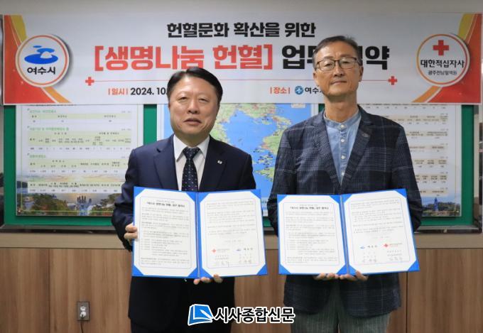 | ¿©¼ö½Ãº¸°Ç¼Ò(¼ÒÀå ½ÅÁؼ·)¿Í ´ëÇÑÀû½ÊÀÚ»ç ±¤ÁÖÀü³²Ç÷¾×¿ø(¿øÀå ±èµ¿¼ö)ÀÌ Áö³ 22ÀÏ ¡®»ý¸í³ª´® ÇåÇ÷¡¯ ¾÷¹«Çù¾àÀ» ü°áÇß´Ù. |