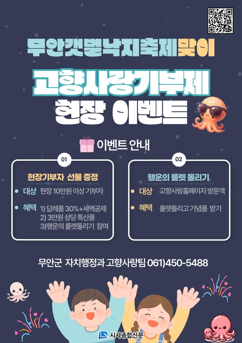 ±è»ê ±º¼ö´Â ¡°¹«¾È°¹¹ú³«ÁöÃàÁ¦ ÇöÀå À̺¥Æ®¸¦ ÅëÇØ °íÇâ»ç¶û±âºÎÁ¦¸¦ ´õ¿í ¾Ë¸®´Â ±âȸ°¡ µÇ±â¸¦ ¹Ù¶õ´Ù¡±¸ç ¡°Áö¼Ó °¡´ÉÇÑ Áö¿ª ¹ßÀüÀ» À§ÇÑ µçµçÇÑ ±â¹ÝÀÌ µÉ °íÇâ»ç¶û±âºÎÁ¦¿¡ ¹«¾ÈÀ» »ç¶ûÇÏ´Â ¸¹Àº ºÐµéÀÇ °ü½É°ú Âü¿©¸¦ ºÎʵ台´Ù¡±°í ¸»Çß´Ù.