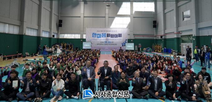 [½Ã»çÁ¾ÇսŹ® = ¿À½ÂÅà ±âÀÚ] ±¤ÁÖ±¤¿ª½Ã Àå¾ÖÀκ¹Áö°üÇùȸ(ȸÀå Àå¼¼Á¾)°¡ ÁÖÃÖÇÏ°í ±¤ÁÖ±¤¿ª½Ã ¼±¸Àå¾ÖÀκ¹Áö°ü(°üÀå À̴븸)ÀÌ ÁÖ°üÇÑ ¡®ÇѸ¶À½ ÈÇÕ´ëȸ¡¯°¡ 25ÀÏ(±Ý) ±¤ÁÖ½ÃÀå¾ÖÀα¹¹ÎüÀ°¼¾ÅÍ¿¡¼ ±¤ÁÖÁö¿ª 7°³ Àå¾ÖÀκ¹Áö°ü Á¾»çÀÚ 300¿©¸íÀÌ Âü¼®ÇÑ °¡¿îµ¥ ¼ºÈ²¸®¿¡ ¸¶¹«¸® µÇ¾ú´Ù.