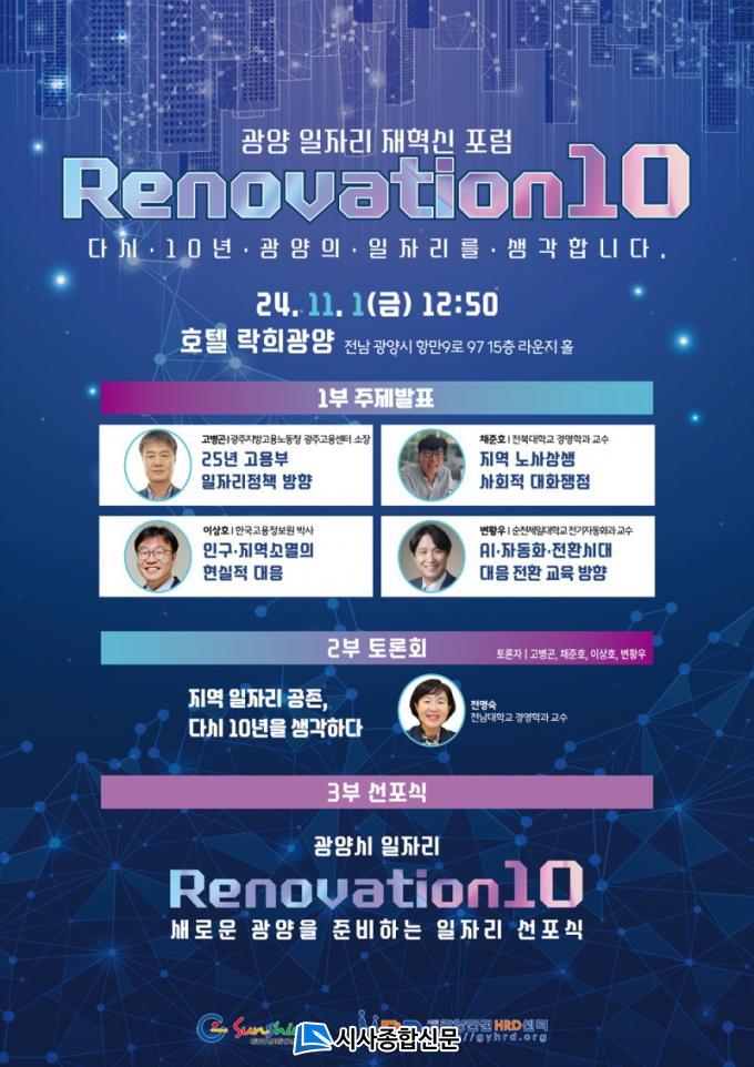 ÀÏÀÚ¸® ÀçÇõ½Å Æ÷·³ ¡®Renovation 10¡¯Àº ±¤¾ç½Ã °í¿ë½ÃÀåÀÌ Áö³ 10³â°£ °ÞÀº º¯È¿¡ ´ëÇÑ ºÐ¼®À» ¹ÙÅÁÀ¸·Î ½ÃÀÇ ¹Ì·¡ ÀÏÀÚ¸®, ¹Ì·¡ »ê¾÷À» Àü¸ÁÇϱâ À§ÇØ ¸¶·ÃµÆ´Ù.