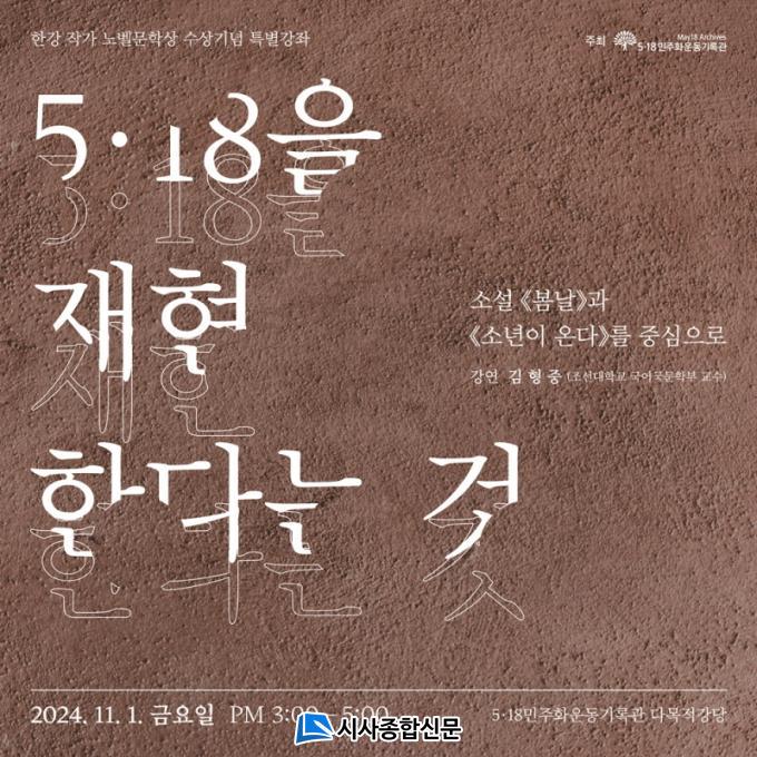 ±èÇüÁß ±³¼ö´Â ¡®5‧18À» ÀçÇöÇÑ´Ù´Â °Í-¼Ò¼³ º½³¯°ú ¼Ò³âÀÌ ¿Â´Ù¸¦ Áß½ÉÀ¸·Î¡¯¸¦ ÁÖÁ¦·Î, ÀÓö¿ì ÀÛ°¡ÀÇ ¡®º½³¯¡¯°ú ÇѰ ÀÛ°¡ÀÇ ¡®¼Ò³âÀÌ ¿Â´Ù¡¯ ¼Ó 5‧18ÀÇ ÀçÇö°ú Ç¥ÇöÇü½Ä µî ¼¼ú °üÁ¡¿¡ ´ëÇØ °¿¬ÇÒ ¿¹Á¤ÀÌ´Ù.