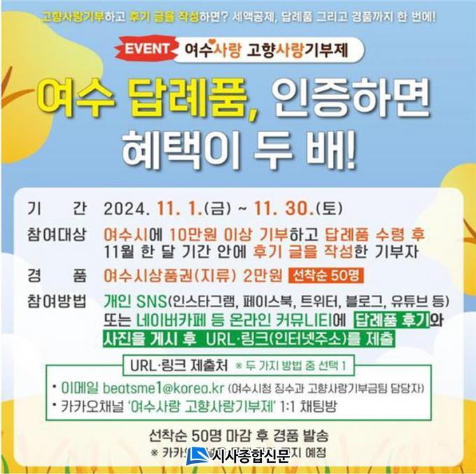 ¿©¼ö½Ã´Â ¼±Âø¼ø 50¸í ¸¶°¨ ÈÄ °æÇ°À» ¹ß¼ÛÇϸç, īī¿Àä³ÎÀ» ÅëÇØ ¸¶°¨À» °øÁöÇÒ ¿¹Á¤ÀÌ´Ù.