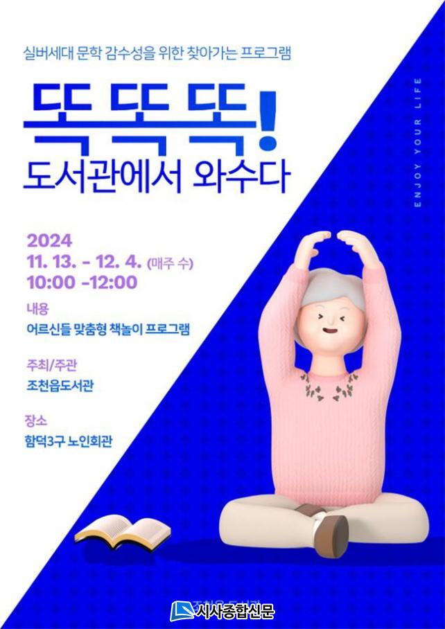 [½Ã»çÁ¾ÇսŹ® = °í¼º¹Î ±âÀÚ] Á¦Áֽà Á¶ÃµÀ¾µµ¼°üÀº ÀØÇôÁ®°¡´Â ½Ç¹ö¼¼´ëÀÇ ¹®ÇÐ °¨¼ö¼ºÀ» Àϱú¿ì±â À§ÇØ 11¿ù 13ÀϺÎÅÍ 12¿ù 4ÀϱîÁö ¸ÅÁÖ ¼ö¿äÀÏ ¿ÀÀü 10½Ã¿¡ ÇÔ´ö 3±¸ ³ëÀÎȸ°ü ¾î¸£½ÅµéÀ» ã¾Æ°£´Ù.