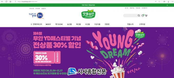 [½Ã»çÁ¾ÇսŹ® = ¿À½ÂÅà ±âÀÚ] ¹«¾È±º ³óƯ»ê¹° ¿Â¶óÀÎ ¼îÇθô ¡®¸À¶ã¹«¾È¸ô¡¯Àº ¿À´Â 15ÀϺÎÅÍ 17ÀϱîÁö °³ÃֵǴ ¹«¾È YDÆä½ºÆ¼¹úÀ» ¸Â¾Æ 1Àδç 3¸Å¾¿ Àü »óǰ 30% ÇÒÀÎ À̺¥Æ®¸¦ ÁøÇàÇÑ´Ù.