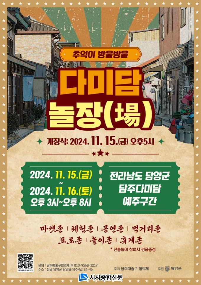 [½Ã»çÁ¾ÇսŹ® = ¿À½ÂÅà ±âÀÚ] ´ã¾ç±º(±º¼ö À̺´³ë)ÀÌ ¿À´Â 15ÀϺÎÅÍ 16ÀϱîÁö ´ãÁÖ ´Ù¹Ì´ã ¿¹¼ú±¸ ÀÏ¿ø(´ã¾çÀ¾ ´ãÁÖ4±æ 24-46)¿¡¼ Áö¿ª »óÀΰú ÁֹΠÈÇÕÀÇ ÀåÀÎ ¡®´Ù¹Ì´ã ³îÀå(íÞ)¡¯À» °³ÃÖÇÑ´Ù.