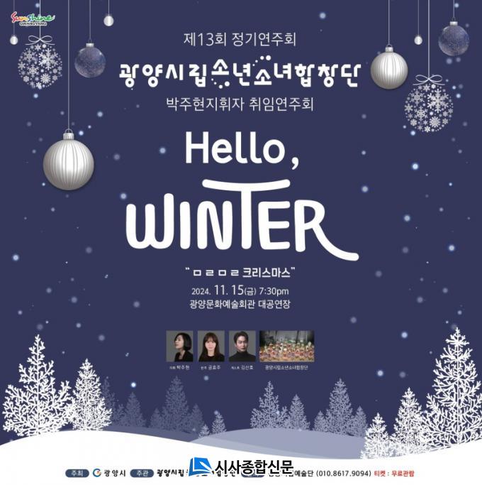 [½Ã»çÁ¾ÇսŹ® = Àå¹Î±Ô ±âÀÚ] ±¤¾ç½Ã´Â 11¿ù 15ÀÏ ¿ÀÈÄ 19½Ã 30ºÐ ±¤¾ç¹®È¿¹¼úȸ°ü ´ë°ø¿¬Àå¿¡¼ ±¤¾ç½Ã¸³¼Ò³â¼Ò³àÇÕâ´ÜÀÌ ¡®Hello, Winter(¹Ì¸® ¸Þ¸®Å©¸®½º¸¶½º)¡¯¸¦ ÁÖÁ¦·Î °ø¿¬À» ¼±º¸ÀÎ´Ù°í ¾Ë·È´Ù.