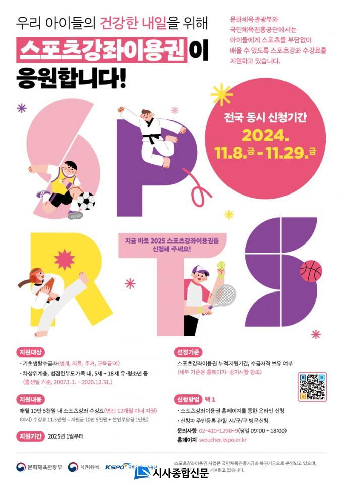 ½ºÆ÷Ã÷°ÁÂÀÌ¿ë±Ç »ç¾÷Àº ½ºÆ÷Ã÷Ȱµ¿À» ÅëÇØ °Ç°ÇÑ »îÀ» ´©¸± ¼ö ÀÖµµ·Ï ÀÌ¿ë±ÇÀ» Áö¿øÇÏ´Â »ç¾÷À¸·Î ¼±¸¿¡ °ÅÁÖÇÏ´Â 5~18¼¼ Àú¼ÒµæÃþ À¯¼Ò³â ¹× û¼Ò³â¿¡°Ô ¿ù ÃÖ´ë 10¸¸5õ¿ø, 5~69¼¼ Àå¾ÖÀο¡°Ô´Â ¿ù ÃÖ´ë 11¸¸¿øÀÌ Áö¿øµÈ´Ù.