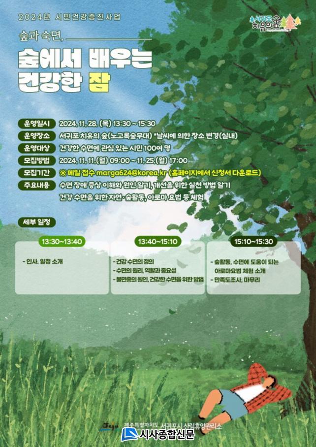 [½Ã»çÁ¾ÇսŹ® = °í¼º¹Î ±âÀÚ] ¼±ÍÆ÷½Ã´Â »ê¸²È޾硤ġÀ¯ ÀÚ¿øÀ» Ȱ¿ëÇÏ¿© °Ç°»ýȰ ½Çõ ºÐÀ§±â Á¶¼ºÀ» À§ÇÑ ½Ã¹Î°Ç°ÁõÁø»ç¾÷ Áß °Ç°ÇÑ ¼ö¸é¿¡ °ü½É ÀÖ´Â ½Ã¹ÎÀ» ´ë»óÀ¸·Î¡°½£°ú ¼÷¸é, ½£¿¡¼ ¹è¿ì´Â °Ç°ÇÑ ÀᡱÇÁ·Î±×·¥À» ¿À´Â 11¿ù 28ÀÏ¿¡ ¿î¿µÇÑ´Ù°í ÀüÇß´Ù.