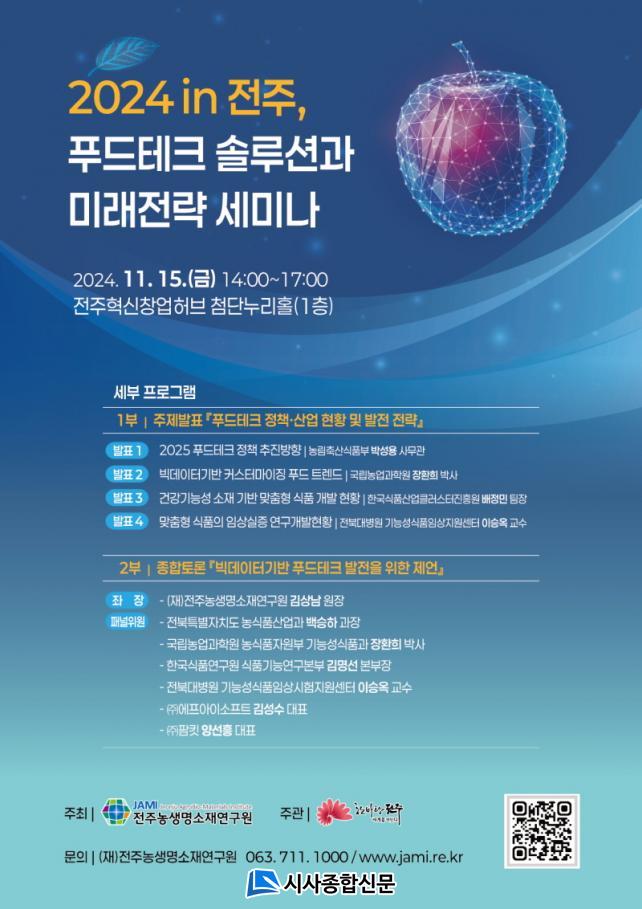 ÀüÁÖ½Ã¿Í (Àç)ÀüÁÖ³ó»ý¸í¼ÒÀ翬±¸¿ø(¿øÀå ±è»ó³²)Àº ¿À´Â 15ÀÏ ÀüÁÖÇõ½Åâ¾÷Çãºê(´öÁø±¸ À¯»ó·Î 67) 1Ãþ ÷´Ü´©¸®È¦¿¡¼ ¡®2024 in ÀüÁÖ, ǪµåÅ×Å© ¼Ö·ç¼Ç°ú ¹Ì·¡Àü·« ¼¼¹Ì³ª¡¯¸¦ °³ÃÖÇÑ´Ù.