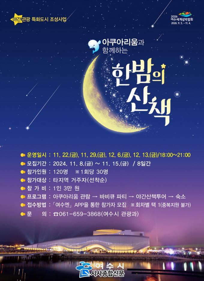 | ¿©¼ö½Ã, ¡®¾ÆÄí¾Æ¸®¿ò°ú ÇÔ²²ÇÏ´Â ÇѹãÀÇ »êÃ¥¡¯ Àαâ 120¸í ¸ðÁý¿¡ 200¿© ¸í ¸ô·Á¡¦¿©¼ö·Î ¶°³ª´Â Ưº°ÇÑ ¿©Çà¿¡ ±â´ë ¸¸¹ß