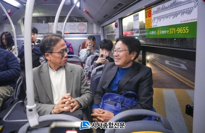 ° ½ÃÀåÀº À̳¯ Ãâ±Ù±æ ½Ã³»¹ö½º¿¡¼ ¸¸³ ½Ã¹Îµé¿¡°Ô ´ë¡¤ÀÚ¡¤º¸ µµ½Ã¿¡ ´ëÇØ ¼³¸íÇϰí, ÀǰßÀ» ±¸Çß´Ù. ¶Ç ´ëÁß±³ÅëÀ» ÀÌ¿ëÇØ ÃâÅð±ÙÇÏ´Â ½Ã¹ÎµéÀÇ °íÃæÀ» ±Í´ã¾Ò´Ù. ° ½ÃÀåÀº ¡°½Ã³»¹ö½º´Â Á¤½Ã¼º°ú ¿¬°á¼ºÀÌ °ÈµÅ¾ß ÇÏ´Â ¸¸Å ºÎÁ·ÇÑ ºÎºÐÀ» ¼¼½ÉÈ÷ ½Å°æ¾²°Ú´Ù¡±°í ¾à¼ÓÇß´Ù.