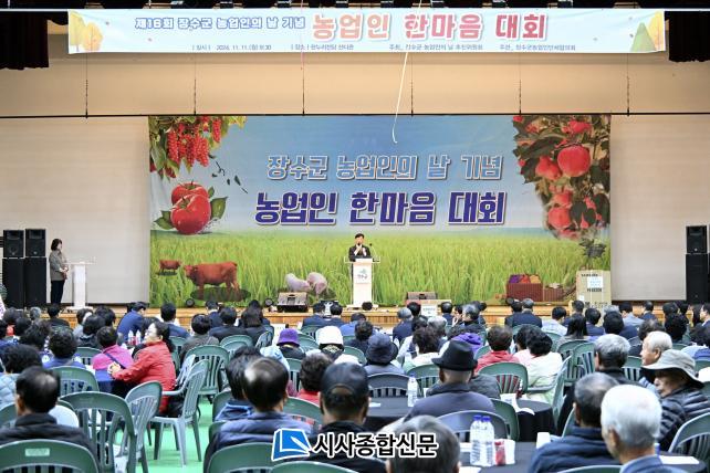 Àå¼ö±º ³ó¾÷ÀÎÀÇ ³¯ Çà»çÃßÁøÀ§¿øÈ¸(À§¿øÀå ±èÁØ¿À)°¡ ÁÖÃÖÇϰí, Àå¼ö±º ³ó¾÷ÀδÜüÇùÀÇȸ(ȸÀå Á¤»ó±æ) ÁÖ°üÀ¸·Î ¿¸° À̳¯ Çà»ç¿¡´Â °ü³» ³ó¾÷Àΰú ÇÔ²² ÃÖÈÆ½Ä ±º¼ö, ÃÖÇÑÁÖ ±ºÀÇȸÀÇÀå ¹× ±ºÀÇ¿ø, ¹Ú¿ë±Ù µµÀÇ¿øÀ» ºñ·ÔÇÑ Áö¿ª »çȸ´ÜüÀå µî 500¿©¸íÀÌ Âü¼®ÇØ ³ó¾÷ÀÎÀÇ ³¯À» ÃàÇÏÇß´Ù.