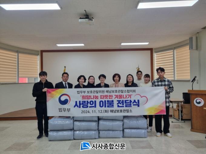 [½Ã»çÁ¾ÇսŹ® = °À±¿À ±âÀÚ] ÇØ³²ÁعýÁö¿ø¼¾ÅÍ(ÇØ³²º¸È£°üÂû¼Ò)´Â ¡¯24. 11. 12. ¹ý¹«ºÎ º¸È£°üÂûÀ§¿ø ÇØ³²º¸È£°üÂû¼ÒÇùÀÇȸ ÇØ³²Áö±¸(ȸÀå ±è¿µ¼÷)·ÎºÎÅÍ ¾î·Á¿î ¿©°Ç¿¡¼µµ °ÇÀüÇÏ°Ô »ì¾Æ°¡°íÀÚ ³ë·ÂÇÏ´Â º¸È£°üÂû ´ë»óÀÚ ¿øÈ£¸¦ À§ÇÑ »ç¶ûÀÇ ÀÌºÒ 10並 ±âŹ¹Þ¾Ò´Ù.