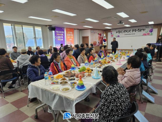 Çà»ç ´çÀÏ, ¾î¸£½ÅµéÀº Ãà»ç¿Í »ýÀÏ ÃàÇÏ ³ë·¡¸¦ µè°í, °Ü¿ï ³»ÀǸ¦ ¼±¹°¹Þ¾Ò´Ù. ÀÌ¾î ¸¶Áß¹°º¸ÀåÇùÀÇü À§¿øµéÀÌ Á¤¼º²¯ ÁغñÇÑ »ý½Å»ó°ú ¶±±¹À» ³ª´©¸ç µû¶æÇÑ ½Ã°£À» º¸³Â´Ù. ƯÈ÷, »ý½Å»óÀº ¸¶Áß¹° À§¿øµéÀÌ ¼Õ¼ö Á¤¼º µé¿© ÁغñÇÑ À½½Äµé·Î ¾î¸£½Åµé¿¡°Ô Å« °¨µ¿À» ¼±»çÇß´Ù.