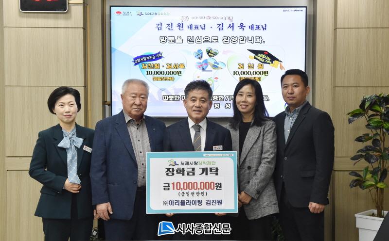À̳¯ ±èÁø¿ø¾¾´Â Áö¿ªÀÇ ¹Ì·¡ ÀÎÀç ¾ç¼ºÀ» À§ÇØ ±èÁ¦»ç¶ûÀåÇÐ±Ý 1,000¸¸¿ø, Áֹκ¹¸®ÁõÁø ¹× Áö¿ª¹ßÀüÀ» À§ÇÑ °íÇâ»ç¶û±âºÎ±ÝÀº ±èÁø¿ø¾¾¿Í ±è¼¿í¾¾°¡ °¢°¢ 500¸¸¿øÀ» ±âŹÇß´Ù.