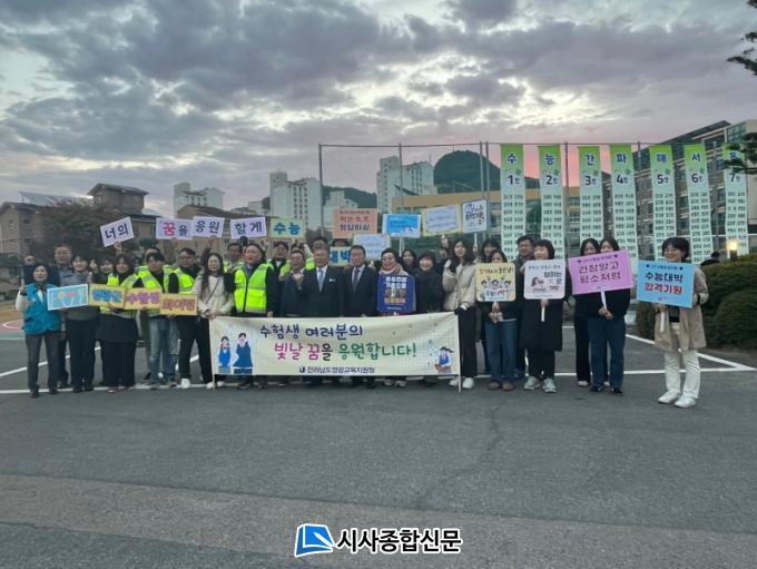 À̸¥ ¾ÆÄ§ºÎÅÍ ½ÃÇèÀåÀÎ ±³¹®¿¡¼¡¸¼ö´É ´ë¹Ú¡¹,¡¸ÇÕ°Ý ±â¿ø¡¹µîÀÇ ¿¶í ±¸È£¸¦ ¿ÜÄ¡¸ç ¼ö´É ´ë¹ÚÀ» ±â¿øÇÏ´Â Çб³ ÈĹèµéÀÇ ÀÀ¿ø°ú ÁغñÇÑ Â÷¿Í ÇÖÆÑÀ» °Ç³×¸ç ±äÀåÇÑ ¸¶À½À» ³ì¿©ÁÖ´Â ±³À°Ã» Á÷¿øµé°ú Çкθð´ÔµéÀÇ µû¶æÇÑ ¼Õ±æÀº ÈÆÈÆÇÑ ºÐÀ§±â¸¦ ´õ¿í °íÁ¶½ÃÄ×´Ù.