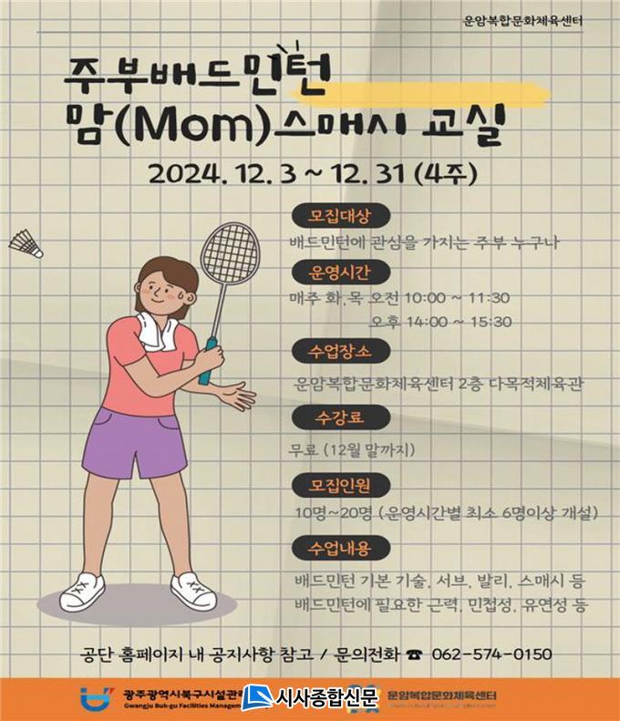 ƯÈ÷, À̹ø ¼ö¾÷Àº ±¤ÁÖ±¤¿ª½ÃºÏ±¸¹èµå¹ÎÅÏÇùȸ¿Í Çù¾÷ÇÏ¿© ¿¤¸®Æ® ¼±¼ö Ãâ½Å °»ç°¡ ¼ö¾÷À» ´ã´çÇÒ ¿¹Á¤ÀÌ¸ç °½À·á´Â ¹«·á·Î ÁøÇàµÈ´Ù. ½Åû¹æ¹ý µî º¸´Ù ÀÚ¼¼ÇÑ »çÇ×Àº ºÏ±¸½Ã¼³°ü¸®°ø´Ü ȨÆäÀÌÁö ¾Ë¸²¸¶´ç-°øÁö»çÇ×À» Âü°íÇÏ¸é µÈ´Ù.