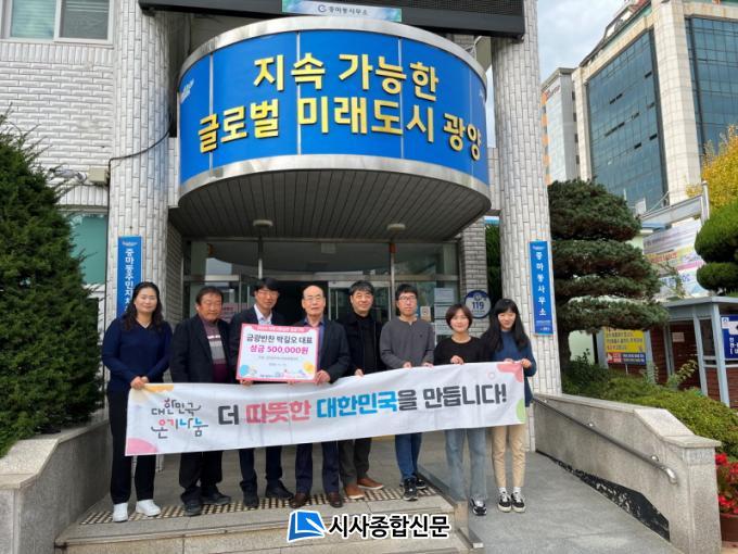 [½Ã»çÁ¾ÇսŹ® = Àå¹Î±Ô ±âÀÚ] ±¤¾ç½Ã´Â Áö³ 15ÀÏ ¹Ú±æ¿À ±Ý±¤¹ÝÂù ´ëÇ¥°¡ Á߸¶µ¿»ç¹«¼Ò¸¦ ã¾Æ ÈÄ¿ø±Ý 50¸¸ ¿øÀ» ±âºÎÇß´Ù°í 18ÀÏ ¹àÇû´Ù.