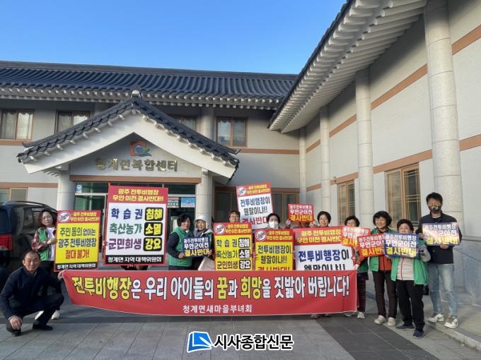 | ¹«¾È±º û°è¸é »õ¸¶À»ºÎ³àȸ, ±¤ÁÖ ÀüÅõºñÇàÀå ¹«¾È ÀÌÀü ¹Ý´ë Ä·ÆäÀÎ Àü°³ |