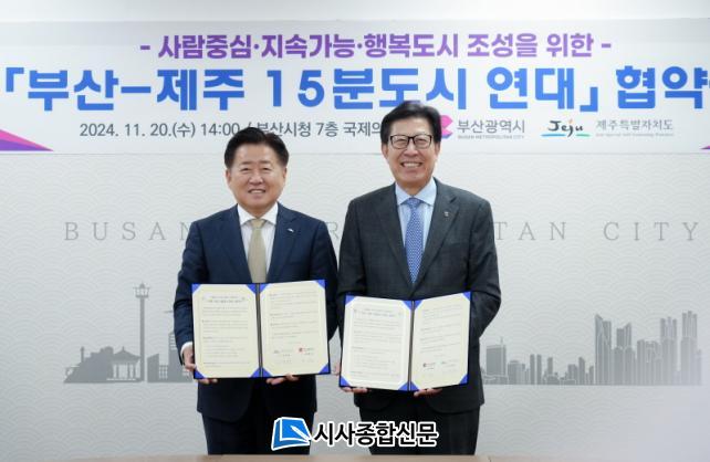¿À¿µÈÆ Á¦ÁÖµµÁö»ç´Â 20ÀÏ ¿ÀÈÄ 2½Ã ºÎ»ê½Ãû ±¹Á¦ÀÇÀü½Ç¿¡¼ ¹ÚÇüÁØ ºÎ»ê½ÃÀåÀ» ¸¸³ª ¡®»ç¶÷Á߽ɡ¤Áö¼Ó°¡´É¡¤Çູµµ½Ã¡¯ Á¶¼ºÀ» À§ÇÑ ¡®15ºÐ µµ½Ã ¿¬´ë ¾÷¹«Çù¾à¡¯À» ü°áÇϰí, Á¤Ã¥ÀÇ ¼º°øÀû ÃßÁø°ú Àü±¹ È®»êÀ» À§ÇÑ °øµ¿ ´ëÀÀ¿¡ ³ª¼¹´Ù.