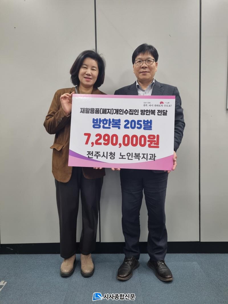»ý°è¸¦ À§ÇØ ½¬Áö ¾Ê°í ÀÏÇÏ´Â ÀüÁֽà Àú¼Òµæ ÀçȰ¿ëǰ(ÆóÁö) ¼ö°Å ¾î¸£½ÅÀ» À§ÇØ ¹æÇѺ¹ 205¹ú(ȯ°¡¾× 729¸¸ ¿ø)À» Áö¿øÇÏ¿© µû¶æÇÑ °Ü¿ï³ª±â¸¦ ÁغñÇÒ ¼ö ÀÖµµ·Ï ÇÏ¿´´Ù.