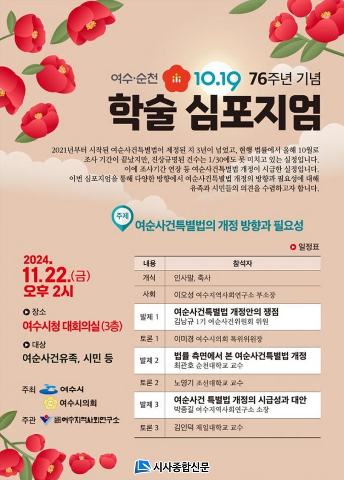 [½Ã»çÁ¾ÇսŹ® = ¿À½ÂÅà ±âÀÚ] ¿©¼ö½Ã(½ÃÀå Á¤±â¸í)°¡ ¿©¼ø»ç°Ç 76ÁÖ³âÀ» ¸Â¾Æ ¿À´Â 22ÀÏ ¿ÀÈÄ 2½Ã ½Ãû ȸÀǽǿ¡¼ ¡®¿©¼ø»ç°Ç Çмú ½ÉÆ÷Áö¾ö¡¯À» °³ÃÖÇÑ´Ù.
