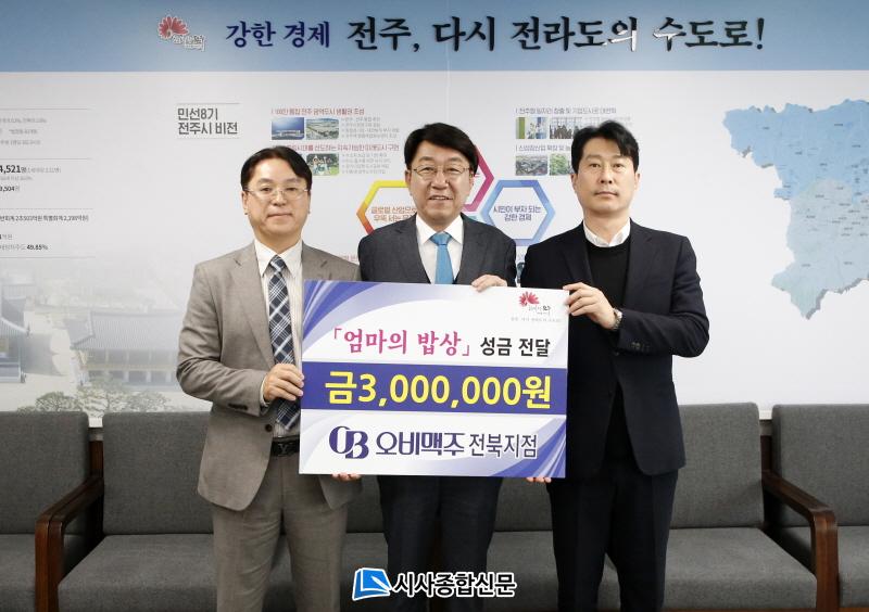 [½Ã»çÁ¾ÇսŹ® = ¿À½ÂÅà ±âÀÚ] OB¸ÆÁÖ(ÁÖ) ÀüºÏÁöÁ¡(ÁöÁ¡Àå ä¿ë¼®)Àº 25ÀÏ ÀüÁÖ½ÃûÀ» ã¾Æ Àú¼Òµæ Ãë¾à°èÃþ ¾Æµ¿À» À§ÇÑ ¼º±Ý 300¸¸ ¿øÀ» Àü´ÞÇß´Ù.